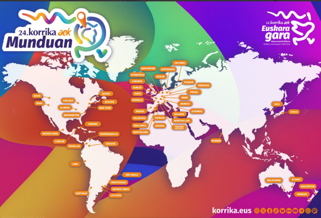La Korrika és una carrera popular de relleus que se celebra cada dos anys des de 1980 amb l’objectiu de promoure l’ús del basc i recaptar fons per al seu ensenyament. Es caracteritza per ser una prova ininterrompuda, ja que es corre durant el dia i la nit sense detindre’s, passant un testimoni de mà en mà entre milers de participants, dins del qual es guarda un missatge que es llig en finalitzar el recorregut. En la seua edició de 2026, la Korrika recorre aproximadament 2.175 quilòmetres al llarg d’11 dies i 10 nits per diferents localitats d’Euskal Herria, començant en Atharratze i finalitzant a Bilbao. Encara que el seu recorregut es limita al territori basc, a València també se celebra de manera solidària una carrera vinculada a aquest esdeveniment, organitzada pel Centre Vasconavarrés Laurak Bat, que permet a la ciutadania participar i donar suport a la difusió del basc des de fora del seu àmbit geogràfic.